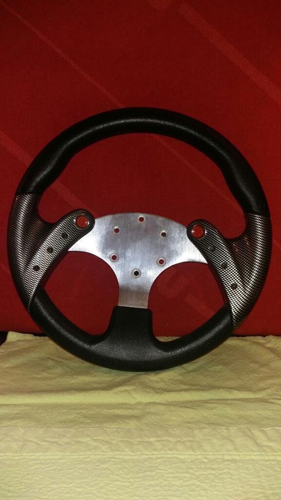 Volante racing genérico, imitación carbono con doble pito al frente.