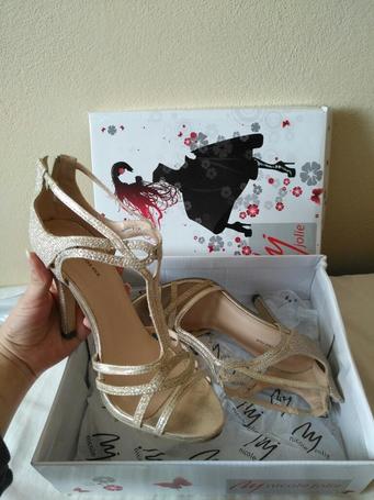 Tacones formales talla 35, dorados.