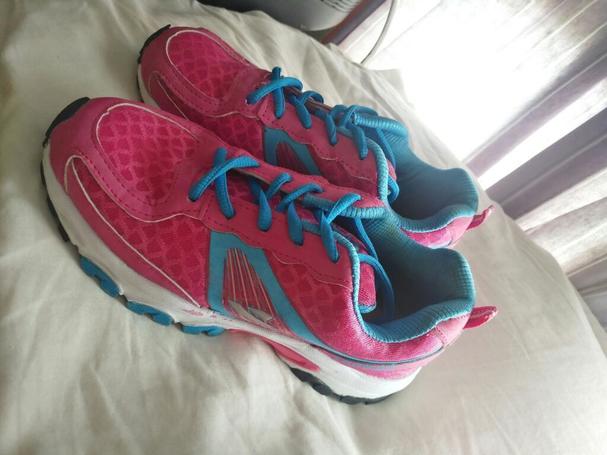 Tenis rosadas y celeste, talla 35.