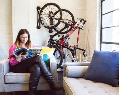 Su diseño permite girar la bicicleta hacia la pared para ahorrar espacio. Ideal para garajes ...