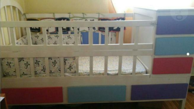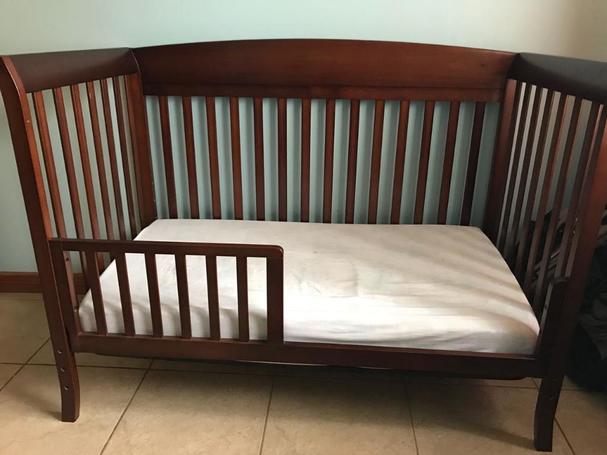 Cuna de madera, se desarma a cama con mesa de noche, se incluye colchon 2 almohadas y un cobertor de cebra