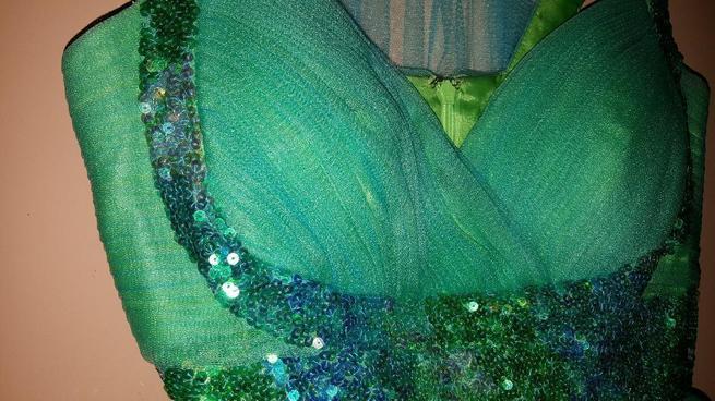 vestido tipo corset, color menta, perlaje de lujo, traído de Nueva York, ajustable, solo una vez de uso.. URGE VENDER.. NEGOCIABLE